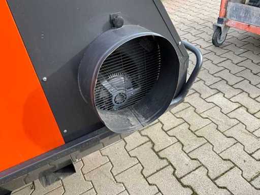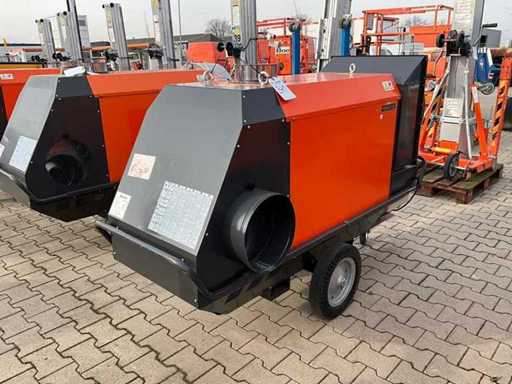 verrijdbaar; indirect gestookt; diesel gestookt; volumestroom 4000 m3 / uur; luchtuitlaat diameter 500 mm; rookgasafvoer; heftruck vorksleuven; working condition