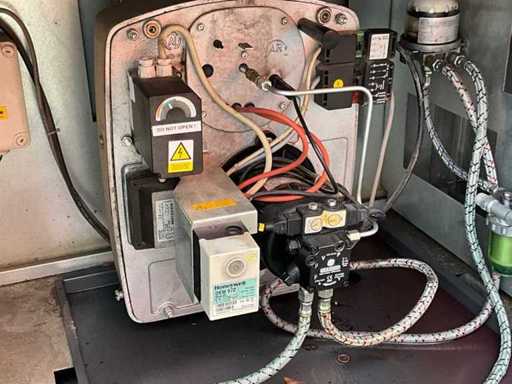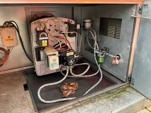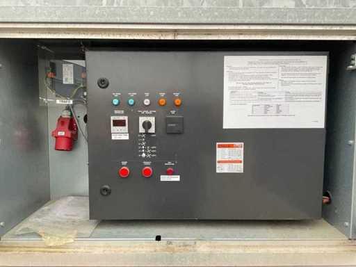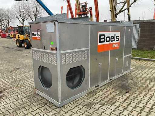 gegalvaniseerd staal onderstel; gegalvaniseerd staal hijsframe; heftruck vorksleuven; roestvast staal behuizing; diesel gestookt; aansluiting externe brandstoftank; verbruik circa 38 liter brandstof / uur; volumestroom 24000 m3 / uur; afgelezen urenstand 9047 uur; gebruiksporen; working condition;