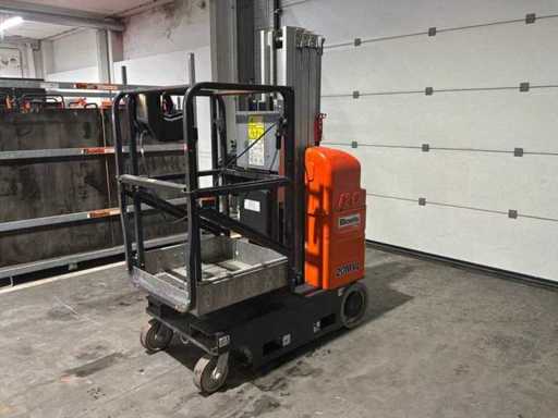 verrijdbaar; staal / aluminium; maximum platform vloerhoogte 5940 mm; kooibediening; 230 Volt stroom aansluiting platform; uitschuifbaar plateau afmeting 1200x650 mm; ingebouwde acculader; 24 Volt; 230 Volt; working condition;