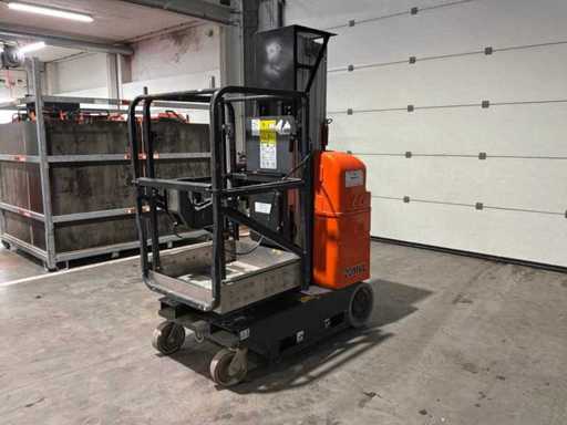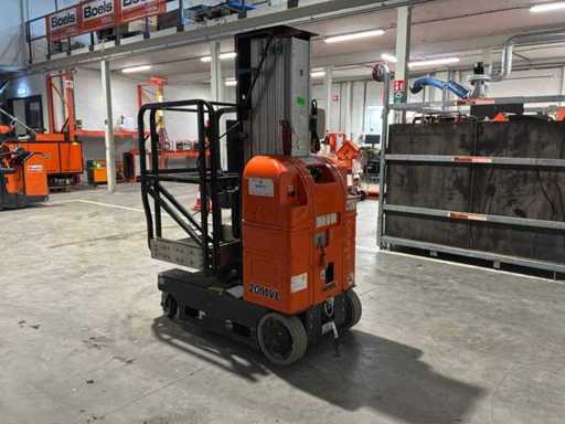 verrijdbaar; staal / aluminium; maximum platform vloerhoogte 5940 mm; kooibediening; 230 Volt stroom aansluiting platform; uitschuifbaar plateau afmeting 1200x650 mm; ingebouwde acculader; 24 Volt; 230 Volt; working condition;