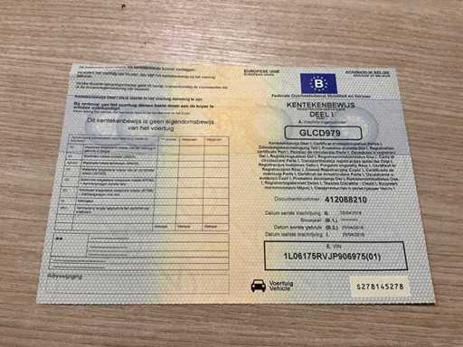 Aanwezige documenten: Kentekenbewijs deel I/II, Identificatieverslag, Keuringsbewijs, Gelijkvormigheidsattest.
