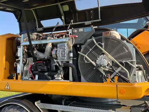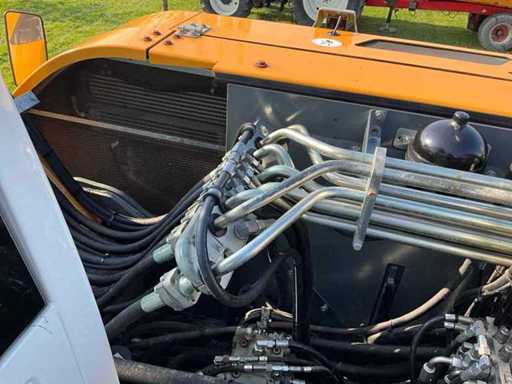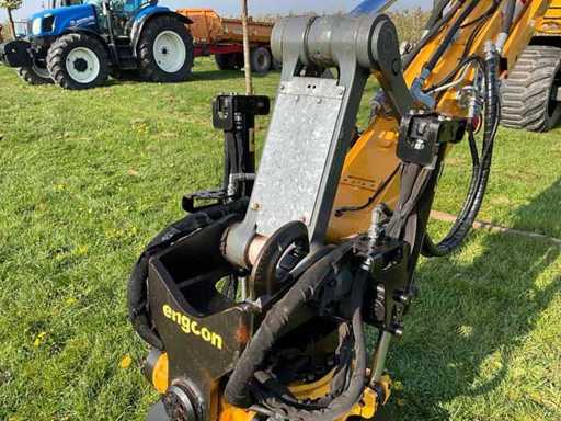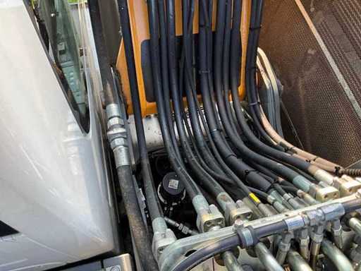 voorzien van gelede giek, slangbreuk beveiliging op gelede giek cilinder / hefcilinders en bak cilinder, Encon draaikantelstuk “CW30”, enkellucht banden, schuifblad, startblokkering, airco, camera’s (zijkant + achter op contragewicht), kettingkisten, geïntegreerde vangmuil, brandstof vulpomp, automatische vetsmering, adblue, kraanboek, Contragewicht compensatie gewicht toegevoegd t.b.v. het draaikantelstuk, Verzwaarde (assen) onderwagen met aanhanger verlichting aansluiting op de onderwagen.