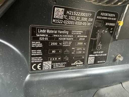 2018 Linde E25-02 Vorkheftruck met 2023 accu