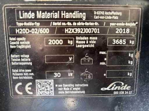 2018 Linde H20D-02/600 Vorkheftruck