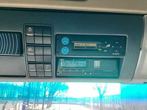 elektrische ramen en spiegels, spiegel verwarming, stuurwiel bediening, airco, sper, digitale tachograaf, koelkast, slaapcabine, dubbele brandstoftank, start onderbreker