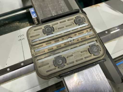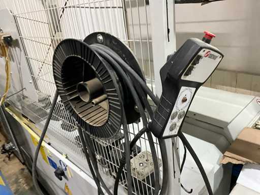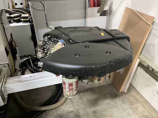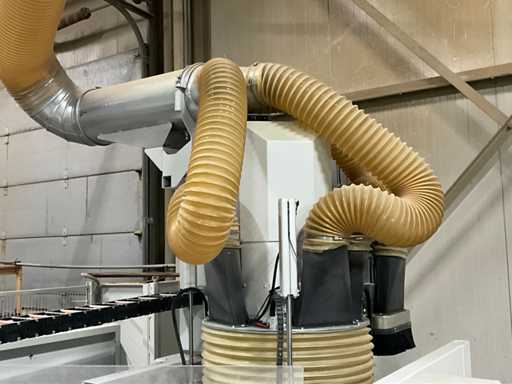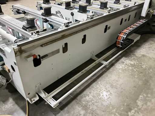 23kVA, Ruimte voor 22 tools, 13 verticale boren, 6 horizontale boren en een cirkelzaag, vacuum tafel met 6 balken en diverse opzetblokken, afvoerband onder tafel