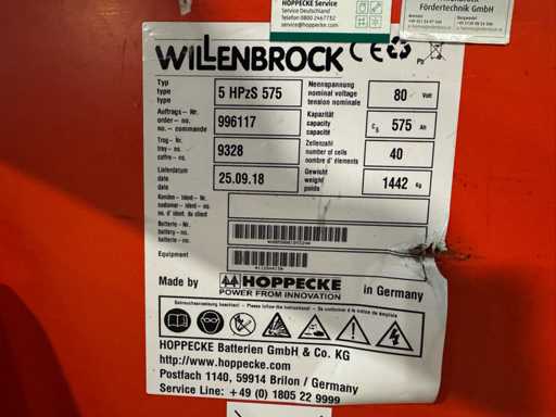 - Accu: 25/09/2018 80 Volt 5 Pzs 575Ah, zeer goede prestaties gemeten met 84,4V