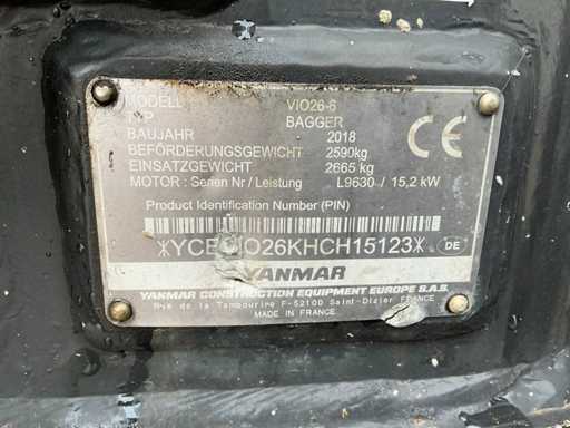 2018 Yanmar Vio 26-6 rupsgraafmachine