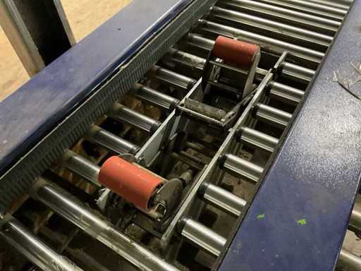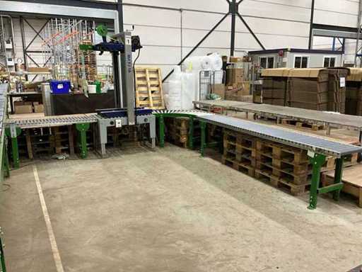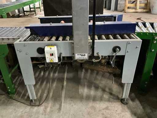 Zowel de boven- als onderkant van dozen; Doos afmetingen: Breedte: 120 - 480mm en hoogte tot circa 120cm; 600W; voorzien van 1x rollenbaan H74xB45xL150cm, 1x rollenbaan bocht H75xB45xL110cm en 1x rollenbaan H75xB45xL300cm