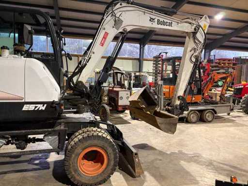 Bobcat E57W wielgraafmachine, gebouwd in 2019 (06/2019), uitgerust met een Doosan 4-cilinder dieselmotor met 42,5 kW vermogen bij 2.400 tpm (EU Fase IV). Bedrijfsgewicht ca. 5.920 kg.