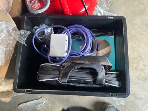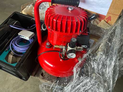 Ref: MCBA 1084 , Bereidingsmachine voor het mengen van farmaceutische oplossingen, met steunkast, met kleine MECAFER-luchtcompressor, Samsung-tablet, DYMO-etiketteermachine, diverse verbruiksartikelen