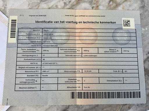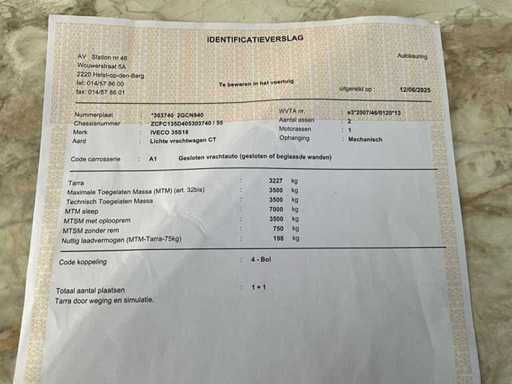 opgelet: wordt verkocht zonder inhoud en inrichting laadruimte - gebroken spiegel en herstelling scherm met bluetooth gebeuren tegen einde veiling dus wordt volledig in orde verkocht, enkel wat gebruikssporen carrosserie (zie foto’s), op motorkap is geen steenslag maar vuil dat nog kan verwijderd worden; lengte laadruimte 3540cm - laag laadvermogen op identificatieverslag veroorzaakt door weging met inhoud en inrichting: vermoedelijk laadvermogen ongeveer 1000kg