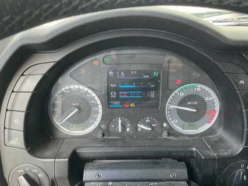 De Vrachtwagen start en rijdt enkele waarschuwingslampjes aan. Batterij dient gecontroleerd te worden.
