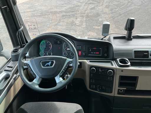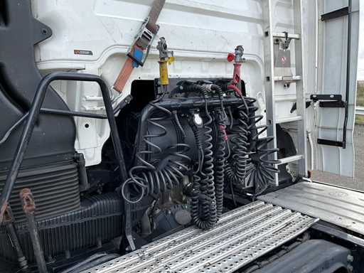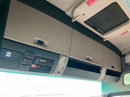 elektrische ramen en spiegels, spiegel verwarming, stuurwiel bediening, airco, sper, digitale tachograaf, koelkast, slaapcabine, dubbele brandstoftank, start onderbreker