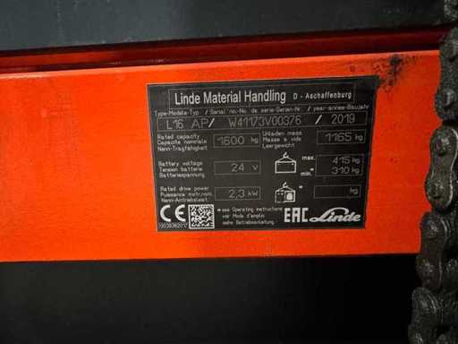 2019 S+UVV 02/2027 Linde L16API 1.600kg LI-ION lithiumschaal Eerste Lift Palletwagen Mierenpalletwagen 3.167 Uur
