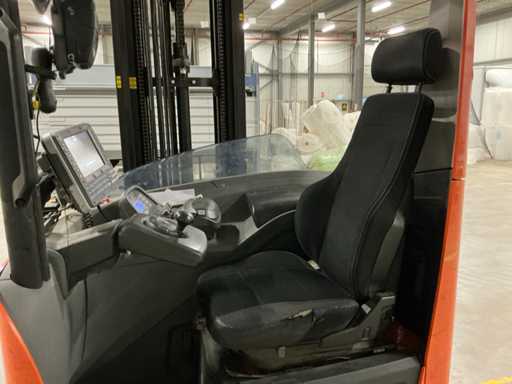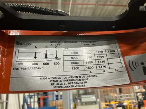 Voorzien van: blue-spot, digitaal display, Zebra labelprinter, Honeywell barcode scanner en display met hoogtemeter en weegsysteem. Inclusief extra accu welke niet is gecontroleerd op werking