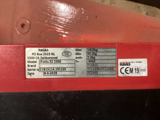 Vorklengte 990mm; capaciteit 1800 kg; Fem 2;