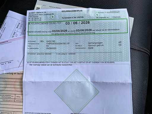 • Technisch toegelaten maximummassa: niet ingevuld op document