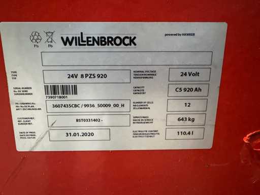 - Accu: 31/01/2020 24V 8PzS 920Ah, zeer goede prestaties gemeten met 25,2V