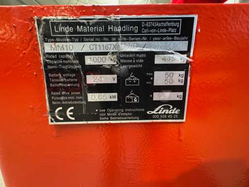 2020 Service+UVV 12/2026 Linde MM10 1.000kg Ant 3.277 uur pallettruck stacker stacker