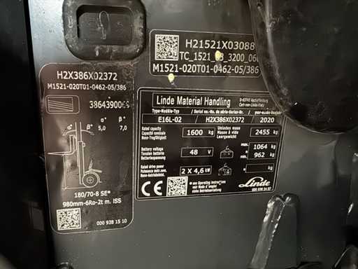 2020 Service + UVV 12/2026 Linde E16 1.600kg Triplex Cab elektrische heftruck 4.375 uur