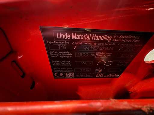 2020 Service + UVV 12/2026 Linde T16 1.600kg palletwagen mierenstacker initiële slag 1.694 uur