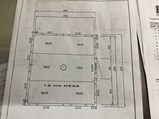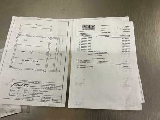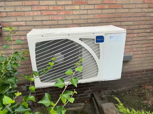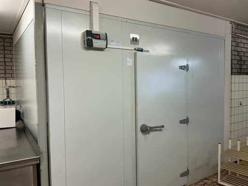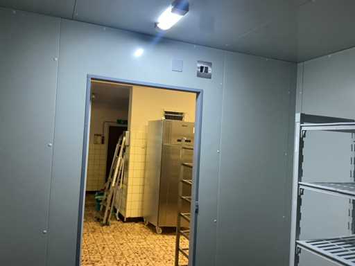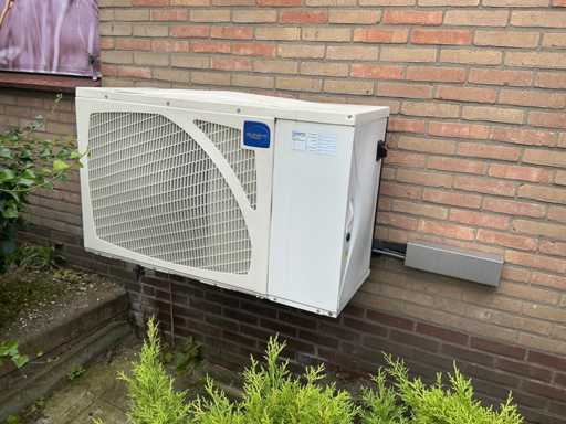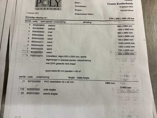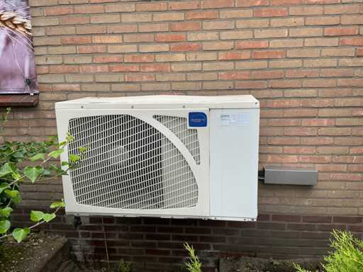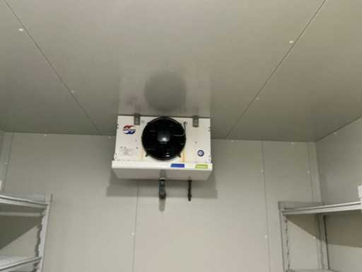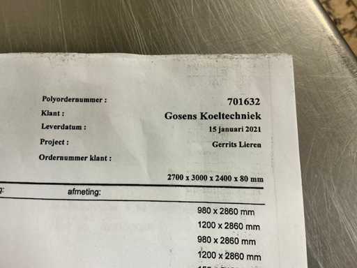Cel afmeting buitenzijde circa 315x285x255cm., afmeting wandgemonteerde 113x50x70cm. buitenunit circa