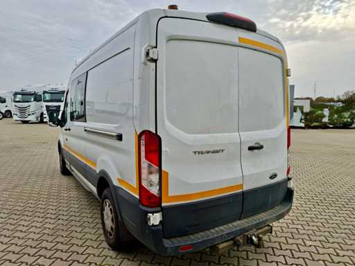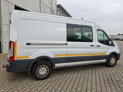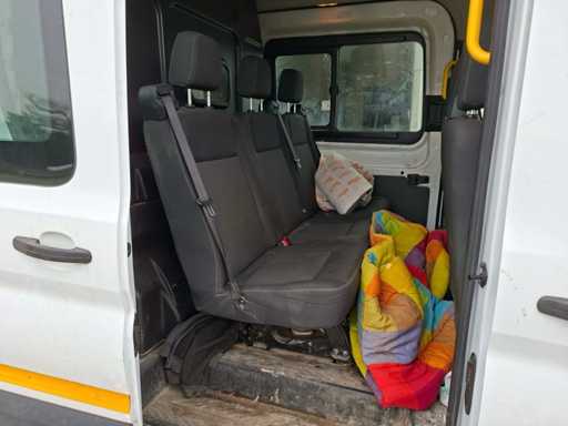 Ford Transit Dubbele Cabine met Euro 6 motor. Wagen start en rijdt, kan onmiddellijk ingezet worden. Lage kilometerstand van 105.023 km. Functionele laadruimte met rekken, airco, trekhaak en 6 zitplaatsen. Laadbak afmetingen (LxBxH): 345 x 195 x 215 cm.