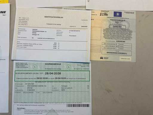 Documenten: Inschrijvsbewijs deel 1+2, gelijkvormigheidsattest, ID verslag, keuringsbewijs 28/04/2026, TUV document