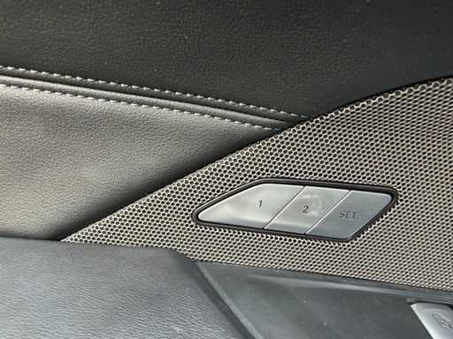 Aan de buitenzijde vallen de laser LED-koplampen, carbon accenten en M-velgen op. Er is een lichte kras aan de rechterachtervelg, die in de loop van december professioneel wordt hersteld door een erkend hersteller, waardoor de velg opnieuw in originele staat zal zijn.