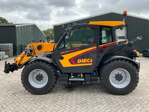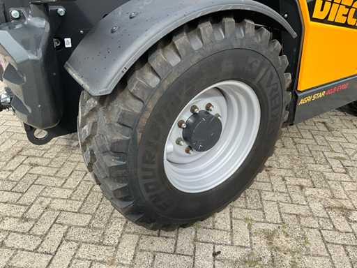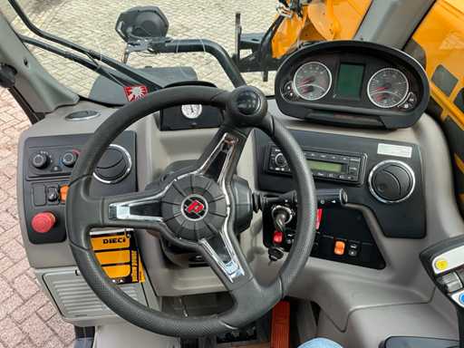 Voorzien van 4-Cil. “Perkins” Dieselmotor; 130 pk; 40km/h; hydraulische snelwissel; Manitou aansluiting;Vario transmissie; geveerde cabine; airco; uitlijnhulp; omkeerfan; geveerde mast; Vredestein: 460/70R24;