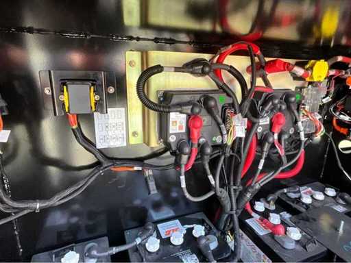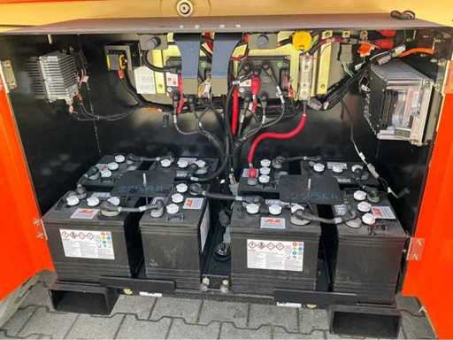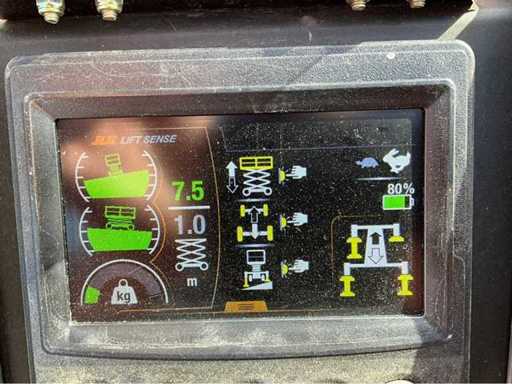 ruw terrein; gebruik: binnen en buiten; platform vloerhoogte 7998 mm; dubbel uitschuifbaar werkplatform; uitschuifbaar platform afmeting 4350x1600 mm; 4x hydraulische stempels; hoge hefcapaciteit; kooibediening; kleurdisplay; transporthoogte circa 2000 mm; heftruck vorksleuven; ongebruikt; working condition;