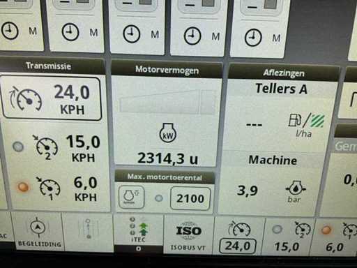 Voorzien van hydraulisch cabine en voorasvering, AD bleu, variabele spoorbreedte op achteras, banden druk regeling, electrische spiegel regeling, koelkast, klapdak, lederen zetels, hydraulische topstang, piton fix trekhaak, abs stekker, isobus, automatische vanghaken, luchtdruk en hydraulische remmen, Belgische boorddocumenten compleet, sleutel aanwezig