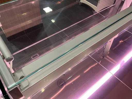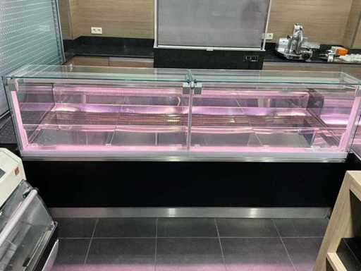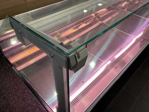 De vitrine verkeert in nette gebruikte staat en is uitgevoerd met binnenverlichting en digitale regeling. Geschikt voor presentatie van vleeswaren, kaas, tapas, bereide gerechten en andere gekoelde producten - Elektrische gegevens: 230 Volt / 50 Hz, Nominaal vermogen: 800 Watt, Nominale stroom: 4,2 A - Besturing: Digitale temperatuurregeling Dixell - Uitvoering: Rechte glazen opbouw, Schuif-/kantelruiten voor bediening en reiniging, Binnenverlichting (vlees/warme presentatiekleur zichtbaar), RVS presentatievloer, Luxe zwarte frontpanelen, Stevige professionele constructie, Onderbouw met koeltechniek geïntegreerd, Geschikt voor dagelijks commercieel gebruik - FUNCTIONEEL, in gebruik van november 2024