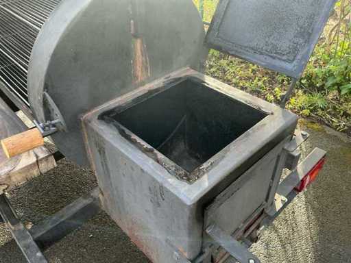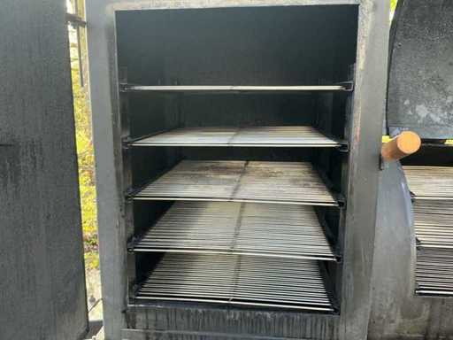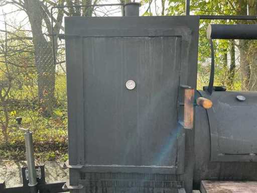 8mm dik staal om temperatuur te behouden - stookcompartiment - lichtende buis met 3 RVS grills om direct en indirect te grillen - rookkast met 5 RVS grills - 13 polige stekker - 3x thermometer aanwezig - kliksysteem voor nummerplaat