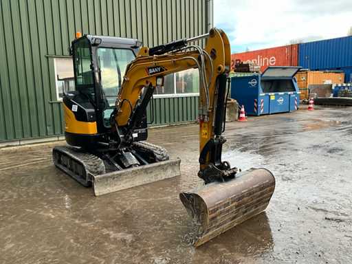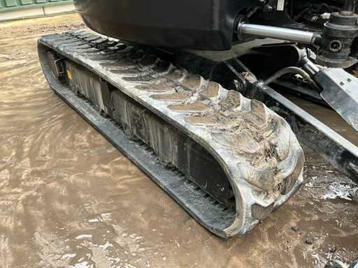 Voorzien van rubber tracks, dozerblad en hydraulische snelwissel