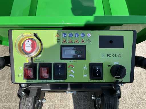 Voorzien van 1000W batterij, 48 V 32ah, werktijd; 8-10 uur, laadtijd 6 tot 7 uur, kan vooruit en achteruit, laadbak 1180 x 670 x 450 mm, hydraulisch kantelen, oplader, ongebruikt in krat