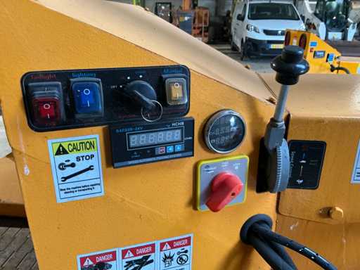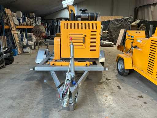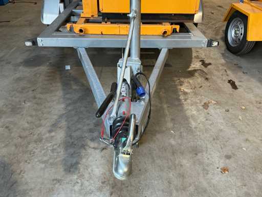 Voorzien van: aanhangopbouw, transportband, steunpoot, regelkast