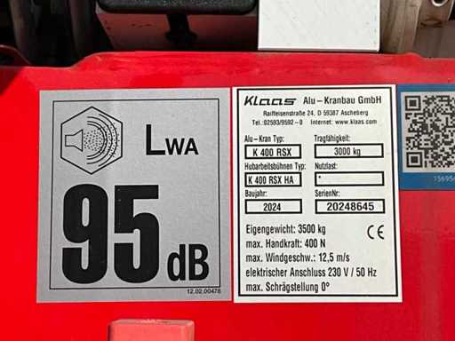2024 Klaas K400 RSX Aluminium aanhangerkraan