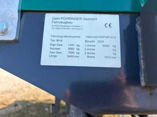 Te koop is een nieuwe Pühringer 3818 drieweg-tipper met een bruto voertuiggewicht van 7 ton.