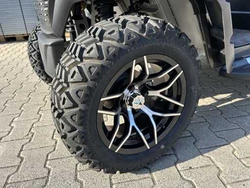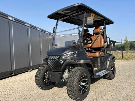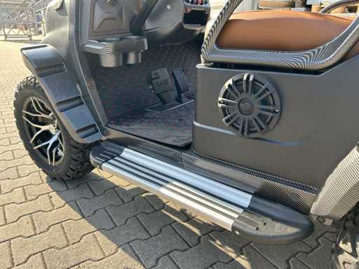 LET OP; ZONDER DAK !; Kleur wijkt af van de foto; Kleur glanzend zwart; 60v/150Ah accu; 5kw; elektrische sleutel; multimedia systeem; 10.1 inch touchscreen; achteruitrijcamera; radio; speakers; bekerhouders; knipperlicht; usb aansluiting; draadloze telefoonlader; 230v laadkabel; terreinbanden 23x10.00-14; riemen; toeter; spiegels; opbergruimte; Carbon look; leather look; disc Brakes; aluminium velg; led koplampen; ongebruikt; bouwpakket in metalen frame. transport afmeting ca. 3500x1400x1300mm