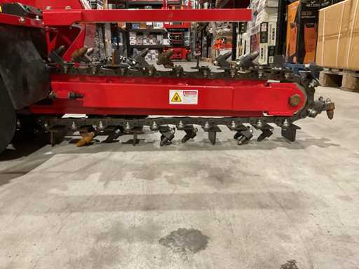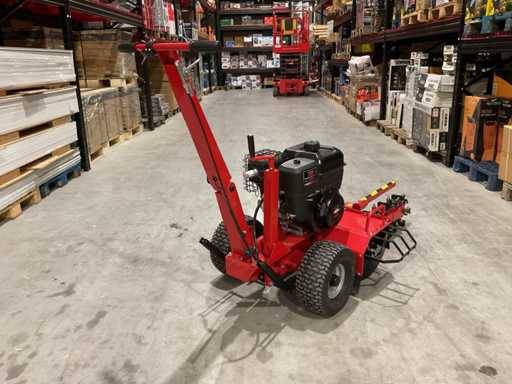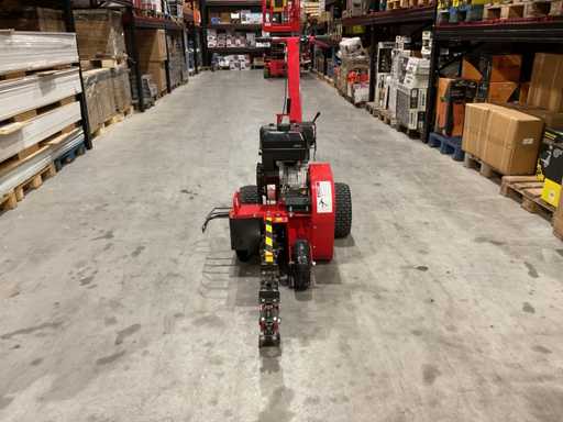 Voorzien van Motorvermogen: 15 hp benzine (± 420 cc); Start: trekstart + elektrische start (E-start); Aandrijving: 2× V-snaar + centrifugaalkoppeling; Sleufbreedte: 100 mm (4"); Sleufdiepte: 600 mm (23,6"); Kettingsnelheid: 550 m/min; Tanden / messen: 27 stuks (carbide tips); Verpakkingsmaat (kist): 1150 × 770 × 860 mm; gewicht: 204kg