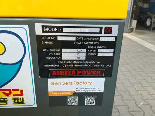 2025 Ashita AG3-70E Noodstroomaggregaat