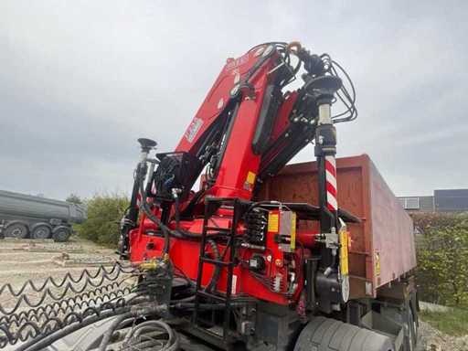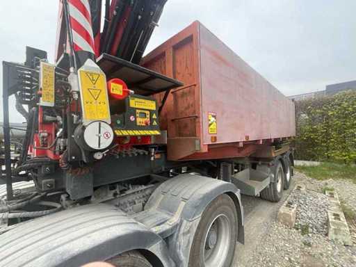 Tipper-oplegger uitgerust met een recente Fassi-hydraulische kraan, in perfecte staat.