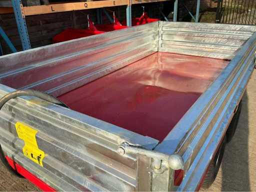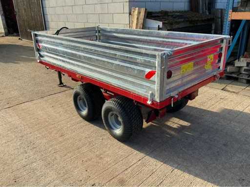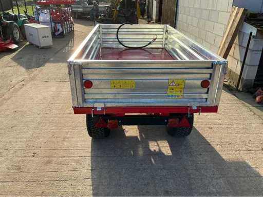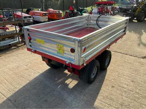 De aanhanger is voorzien van een hydraulisch kipsysteem, stevige stalen constructie en een verzinkte laadbak. Dankzij de dubbele as biedt de kipper extra stabiliteit tijdens transport en bij het kippen. Bak afmeting 2m30 op 1m16 met 4 alle terrein banden en voorzien van verlichting en reflectoren.
