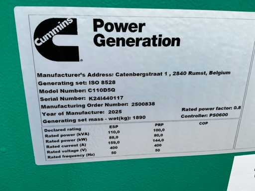 2025 Cummins C110D5Q Aggregaat 110kVA