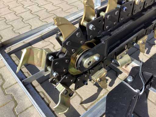 v.v. schranklader/“Bobcat” opname-/aanbouwplaat; hydromotor; hydraulisch slangenpakket; werkbreedte 860 mm; werklengte 1750 mm; kettingbreedte 180 mm; ongebruikt in stalen transportframe