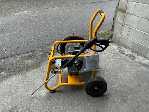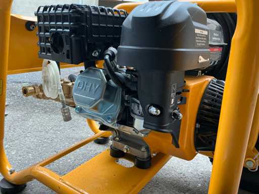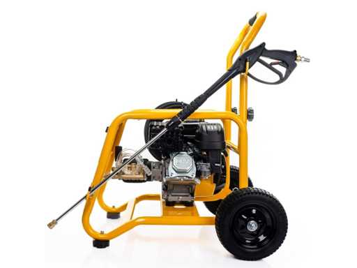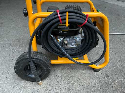 Voorzien van: geschikt voor zware installaties, machines, agrarische en commerciële toepassingen, hoge kwaliteit pomp met messing kop, geleverd met 15 mm slang, pistool met snelkoppeling, hogedruklans en een keuze uit 5 verschillende sproeipatronen, stroomsnelheid (l/m) : 11,3, maximum druk (PSI) : 3100, motor vermogen (PK) : 7,5, start methode : trekkoord, slang aansluiting (inch) : 3.8″ QR, slanglengte (voet/m) : 40 / 12,2 5/16″ 4000PSIstaal omwikkelde rubber slang, mondstukken : 0, 15, 25 & 40 graden; standaard zeep mondstuk, brandstoftank inhoud (l) : 3,6, afmetingen (mm)(LxBxH : 625 x 505 x 600.