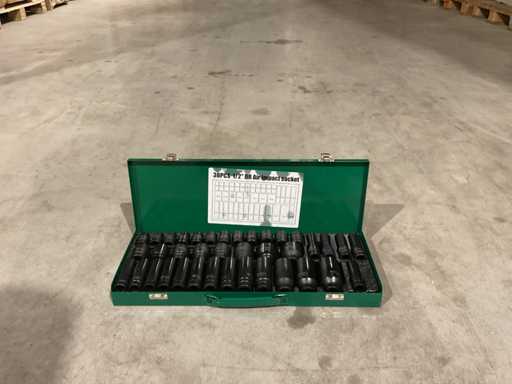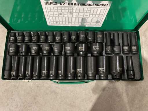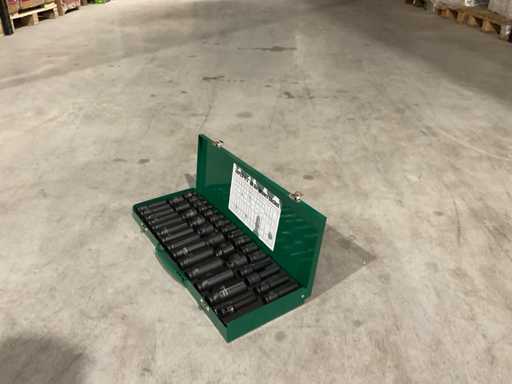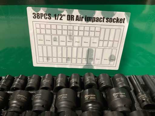 Voorzien van 20delig korte maten 8, 9, 10, 11, 12, 13, 14, 15, 16, 17, 18, 19, 20, 21, 22, 23, 24, 27, 30, 32; 18 delige lange doppen maten lange krachtdop 8 , 9 , 10, 11 , 12, 13, 14, 15, 16, 17, 18, 19, 21, 22, 24, 27, 30, 32; Ongebruikt in doos