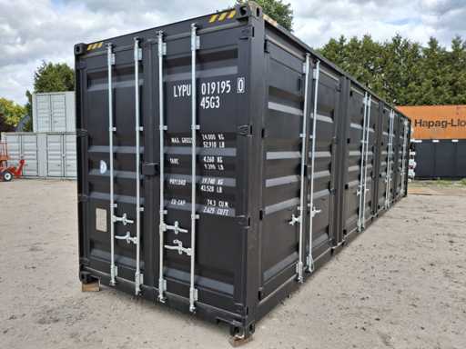 2025 Rhino-Cross-Containers 40 ft High Cube Zwart Zeecontainer met 4 zijdeuren
